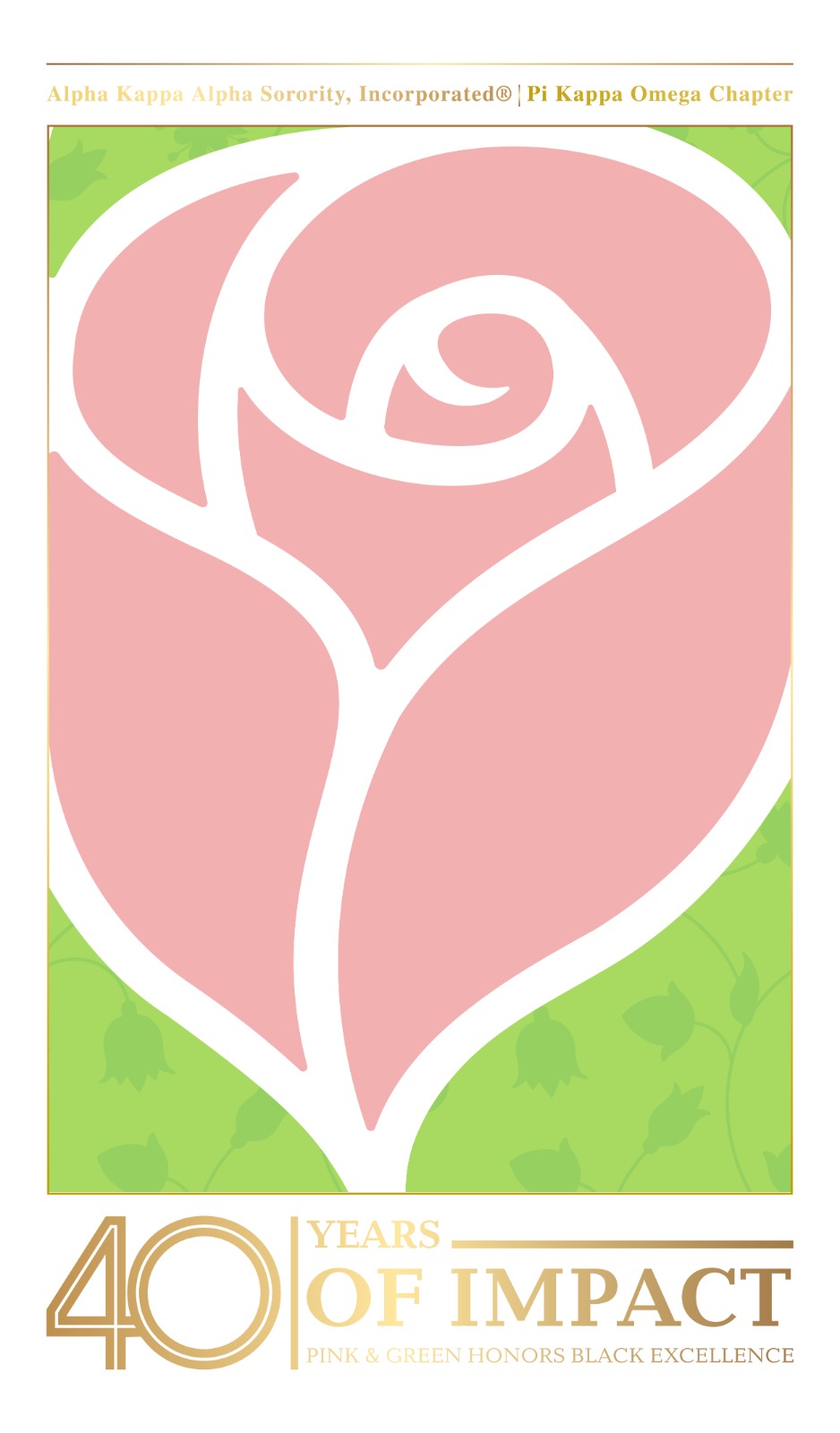 The Pi Kappa Omega Chapter is thrilled to host its special 40th anniversary celebration, “40 Years of Impact: Pink & Green Honors Black Excellence.” This momentous event will honor four decades of our unwavering commitment to community, sisterhood, and excellence. Join us for a celebration that beautifully blends a significant milestone with the elegance and richness of Black culture.